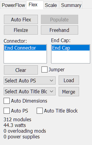 Press this to "flexize" the selected object, which may or may not have open paths. It will use the last selected LED Flex brand and module. You can use the Auto Flex button to select the module, and then press Flexize to create the LED Flex population.