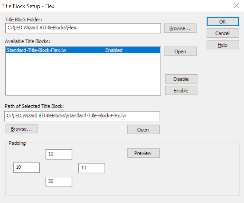 The Title Block Setup dialog box lets you configure how title blocks are used. There's a special for Flex title blocks.